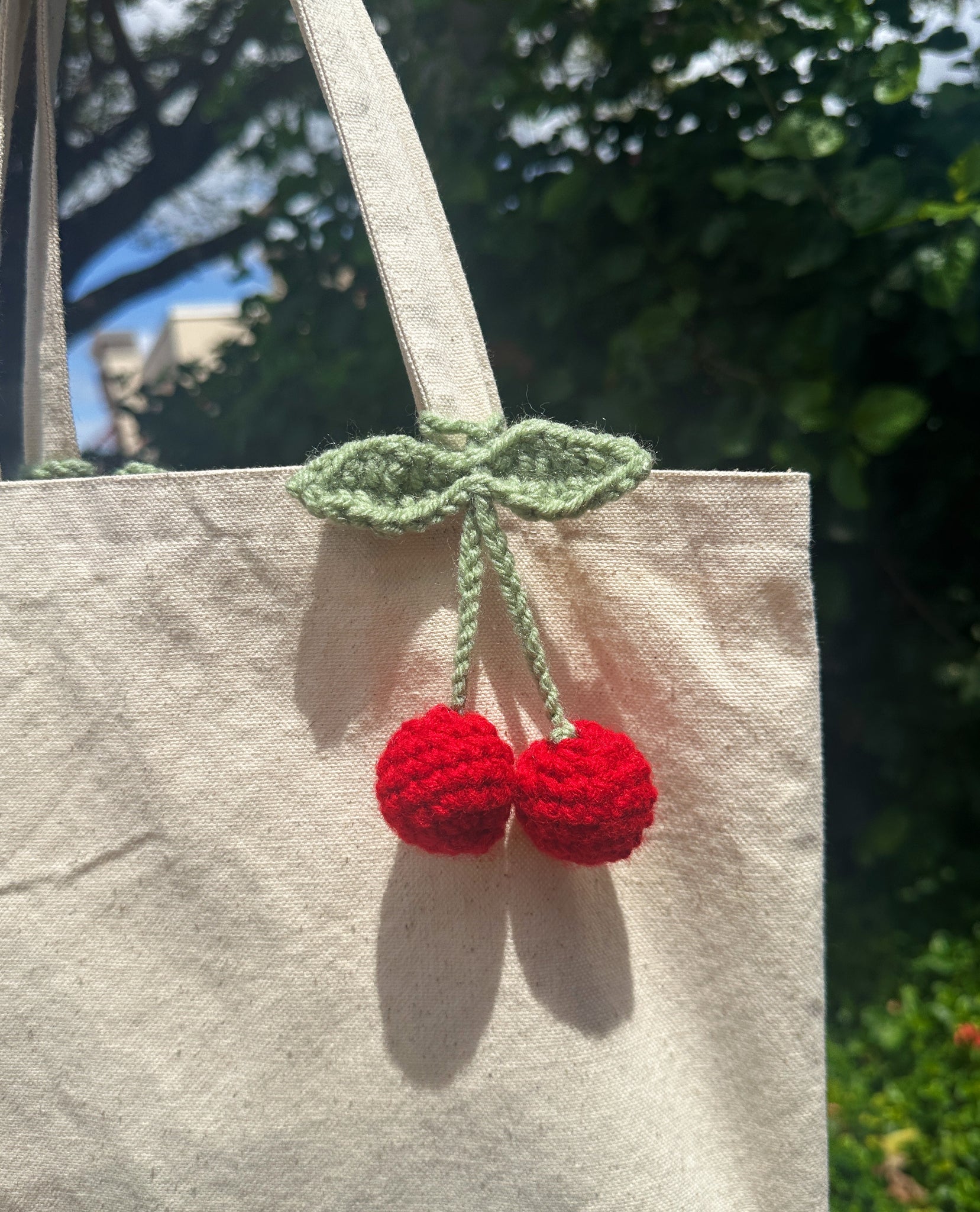 THE cutest keychain ever!! Attach it to your bag by pulling the cherries through its loop onto your bag strap! Handmade with love by Kenzie!