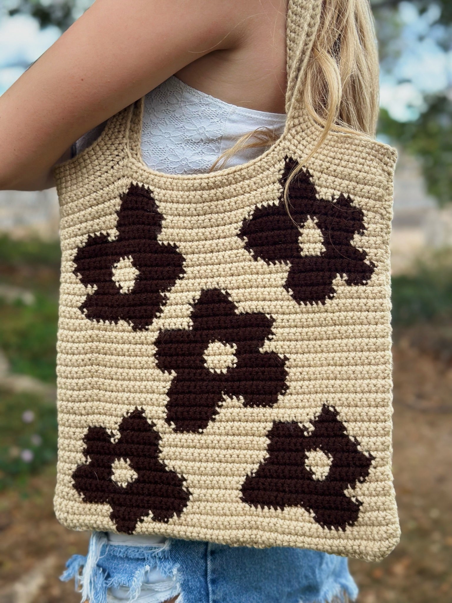 Tan Flowers Crochet Bag