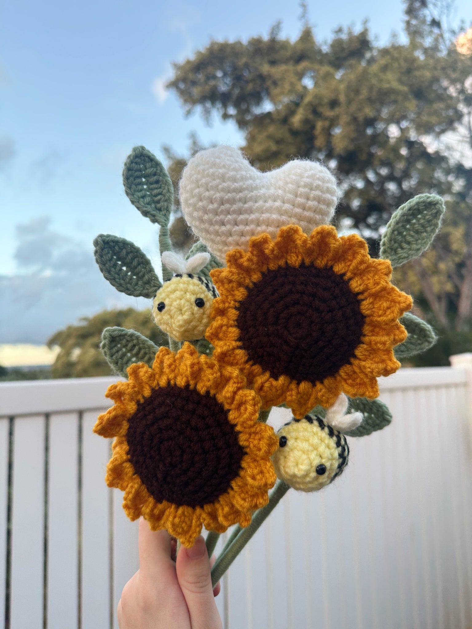 The sweetest lil bouquet perfect for Valentines Day! Comes with two sunflowers, 2 lil bees, a white heart and 2 leaves. Such a sweet and simple Valentines Day piece!