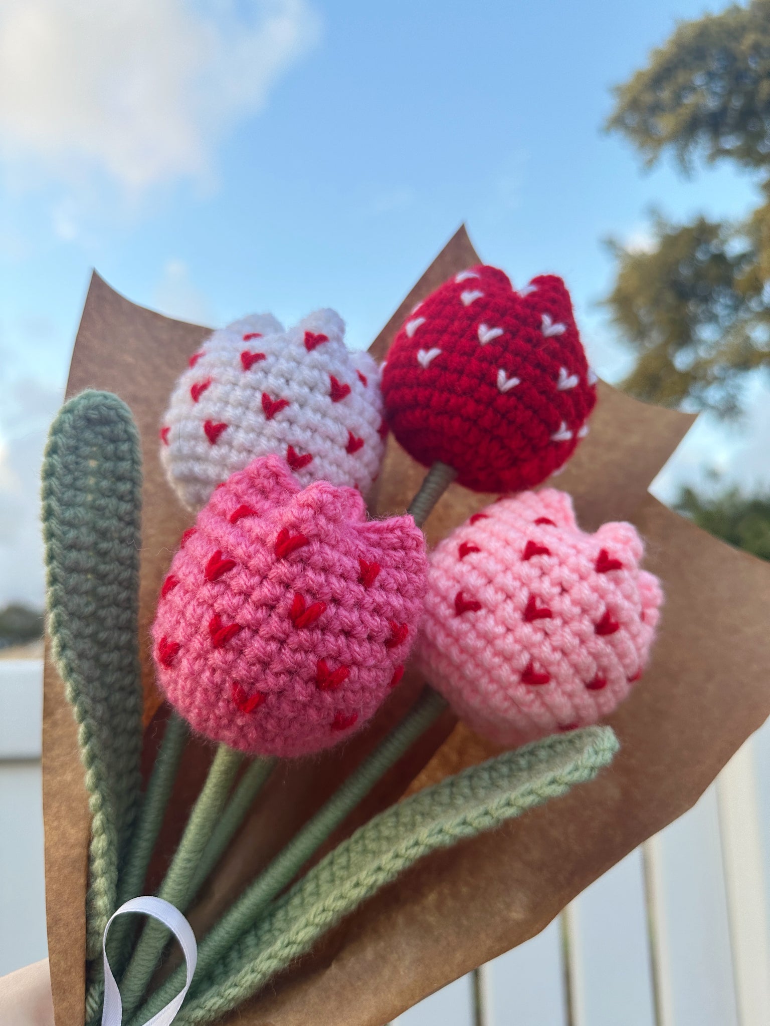 The sweetest tulip bouquet perfect for Valentines Day! Comes with four tulips with hearts embroidered on them and 2 tulips leaves. Such a sweet and simple Valentines Day piece!