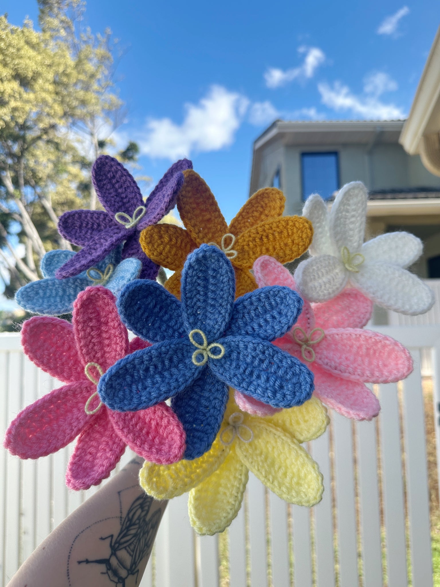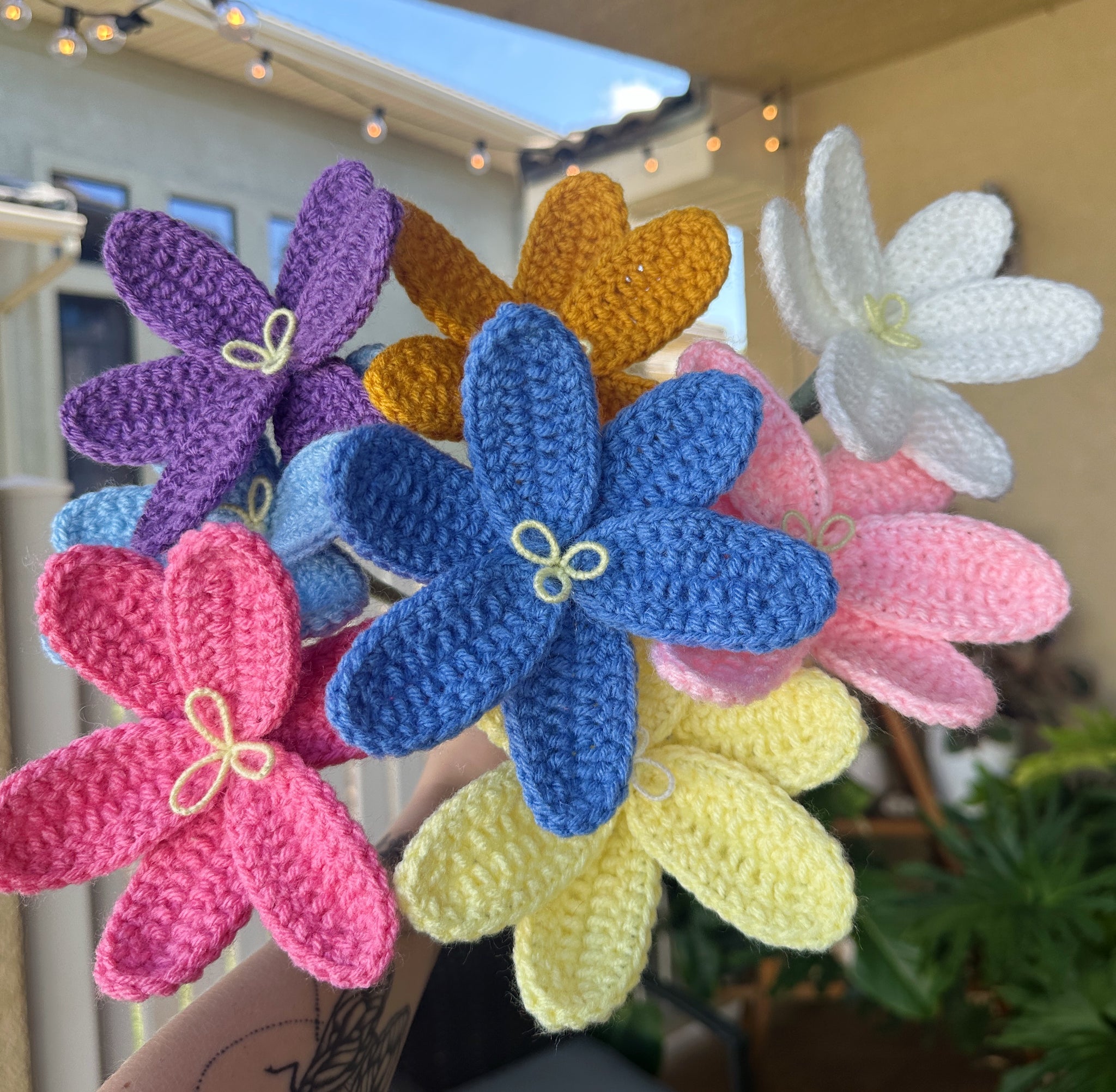 The PRETTIEST crochet bouquet filled with only Lilie’s! All the Lilie’s have wire in the petals so you can position them as you want! There are 8 stems that fill a vase perfectly!