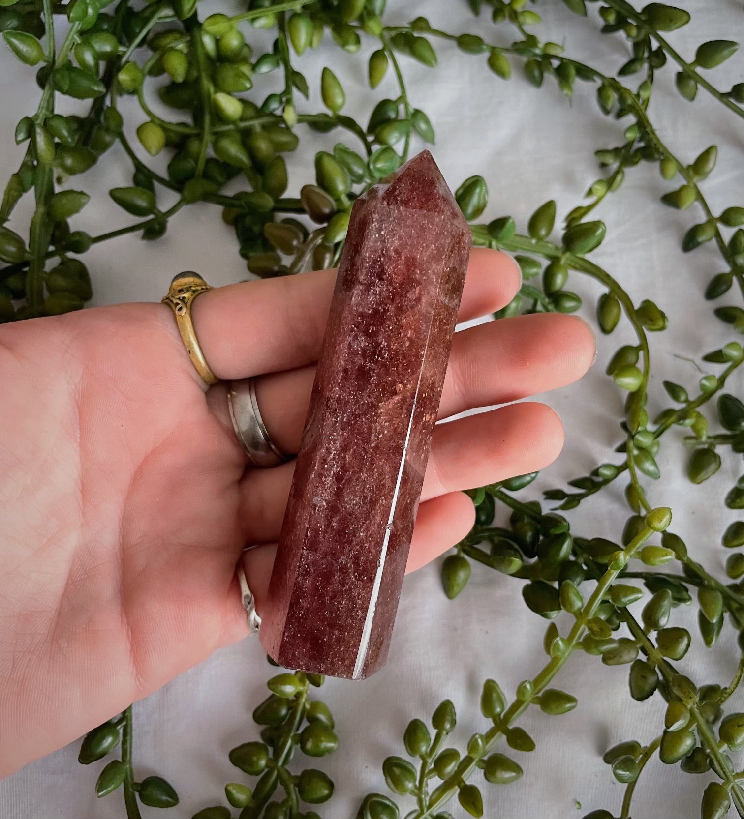 Strawberry Quartz is a universal love stone. It encourages self love and brings in relationships. Strawberry Quartz boosts confidence and show you the path that will be best for you. It protects against negative energies and keeps your energy cleansed.