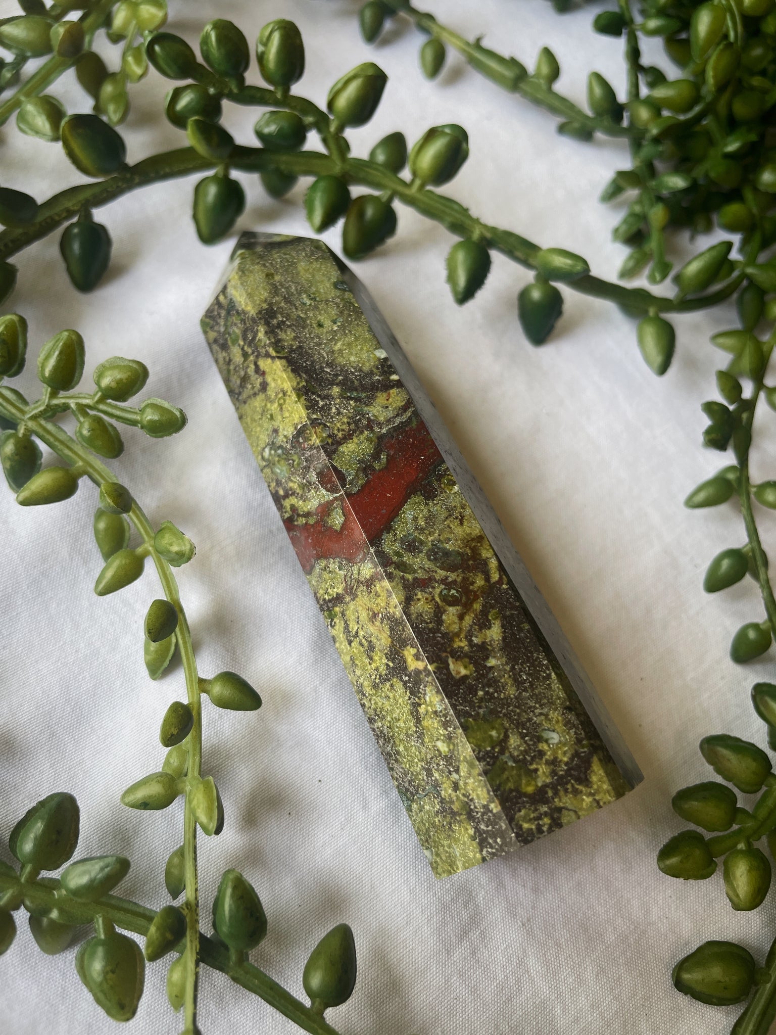 Dragons Blood Jasper promotes creativity, courage and strength. It is believed to hold the energy of a “dragon”, showing bravery, wisdom and protection. It brings the mind and body to a state of calmness to help achieve goals.